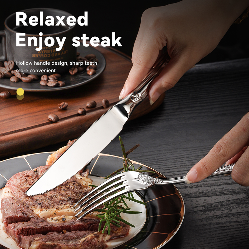 The special flower embossed design on the handle makes the usual cutlery more unique. A romantis option for dine with your family.