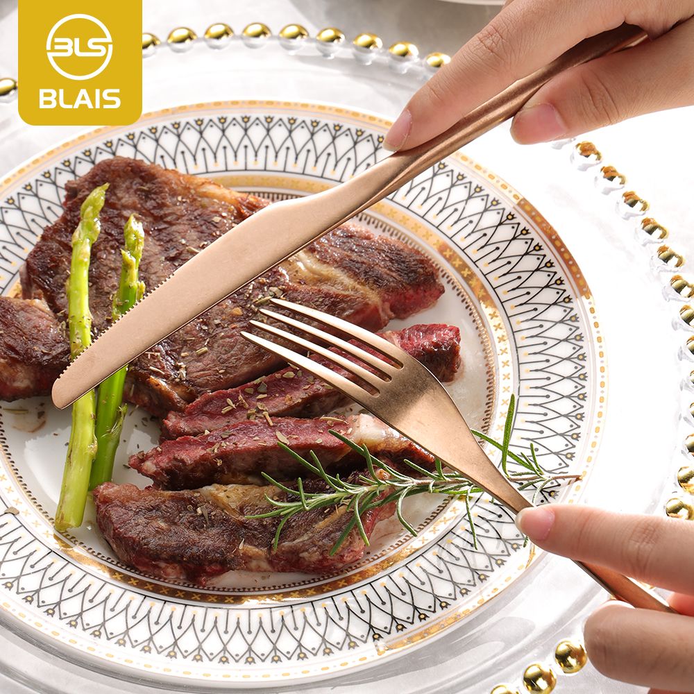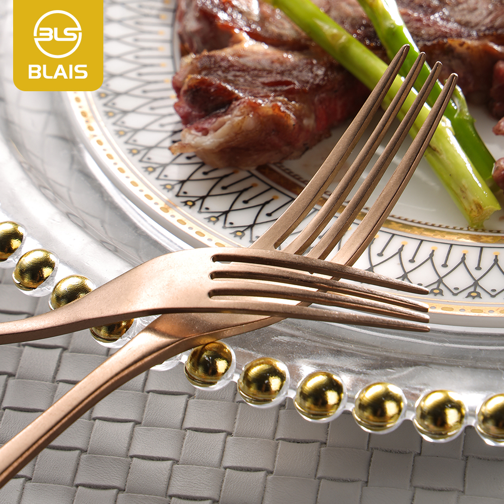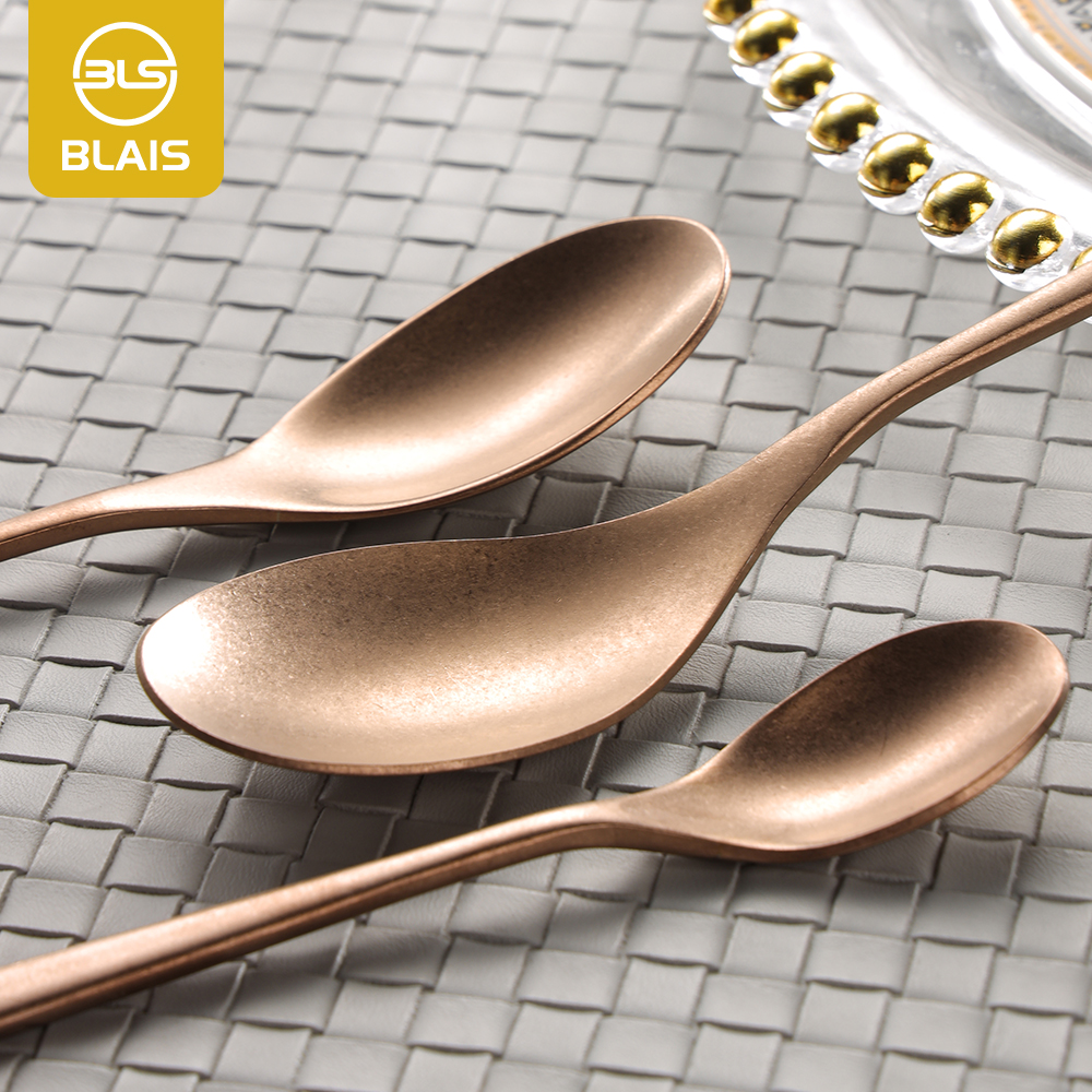 Vintage frosted Coppper Weddings Modern long handle 304 Stainless Steel Flatware