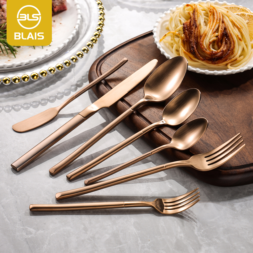 Wholesale Luxury 18/10 Stainless Steel Cutlery Set High-End Brushed Matte Copper Rose Gold Plated Flatware for Parties Weddings
