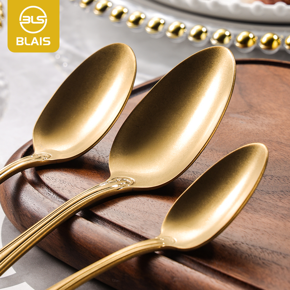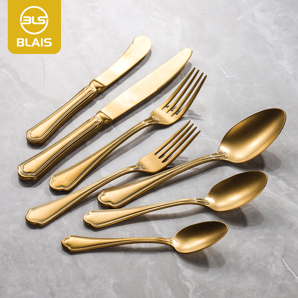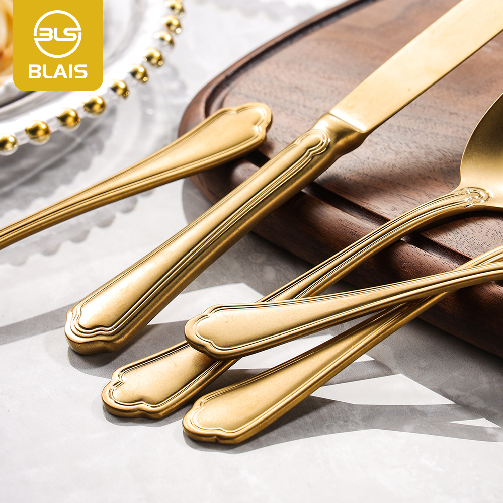 Dishwasher Safe Wholesale High End Vintage Brushed Matte Frosted Gold Stainless Steel 304 Spoon Fork Cutlery Set for Wedding