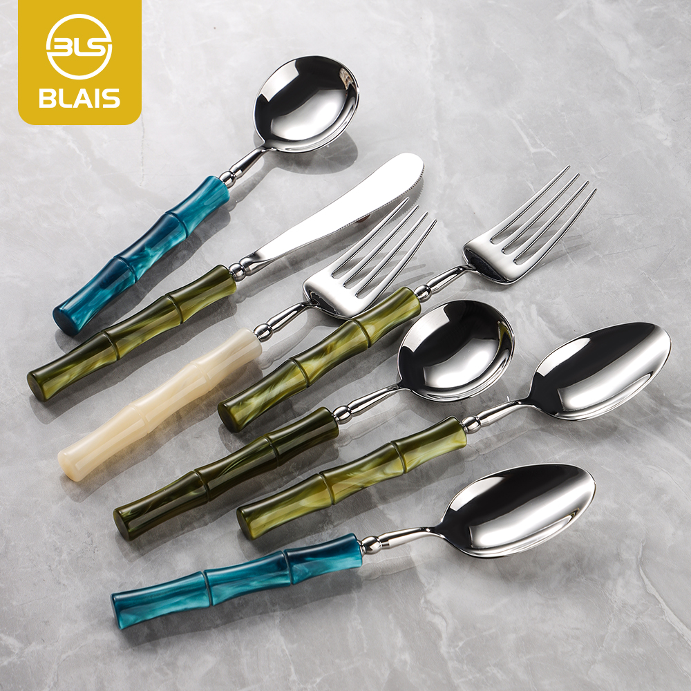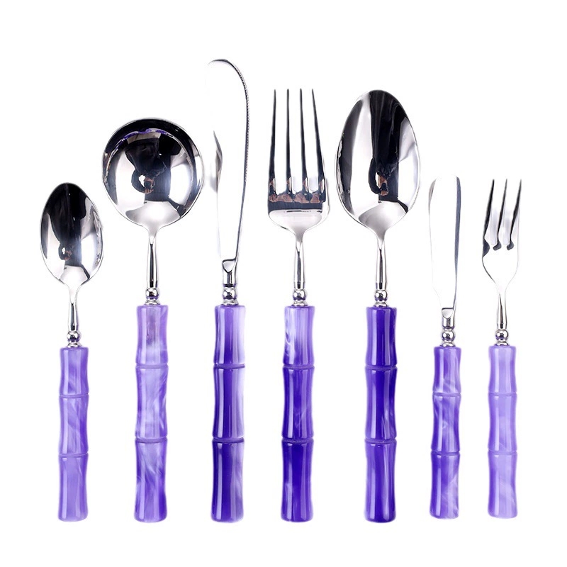 Bring a touch of nature-inspired elegance to your table with the Bamboo Resin Flatware Collection. This unique set includes dinner forks, salad forks, knives, teaspoons, and butter knives, all designed to elevate your table setting for weddings, garden parties, and tropical-themed events.
