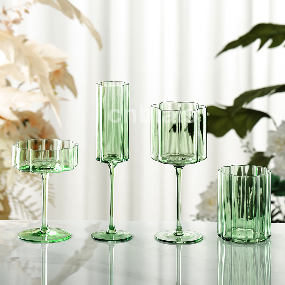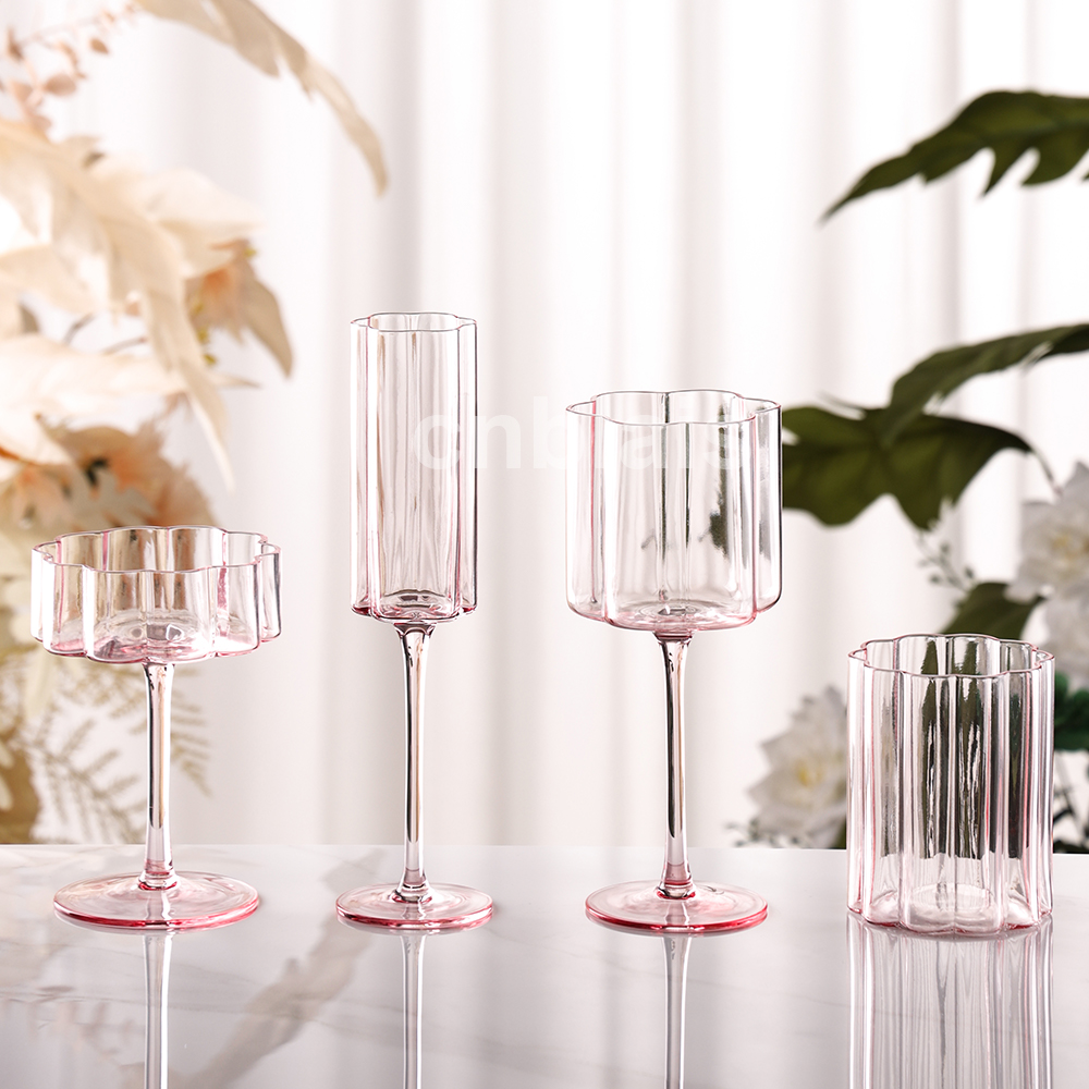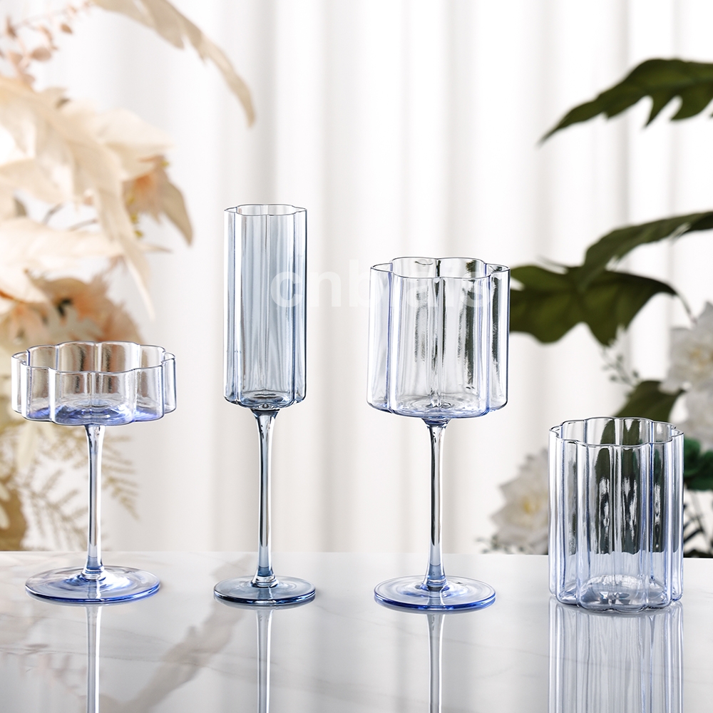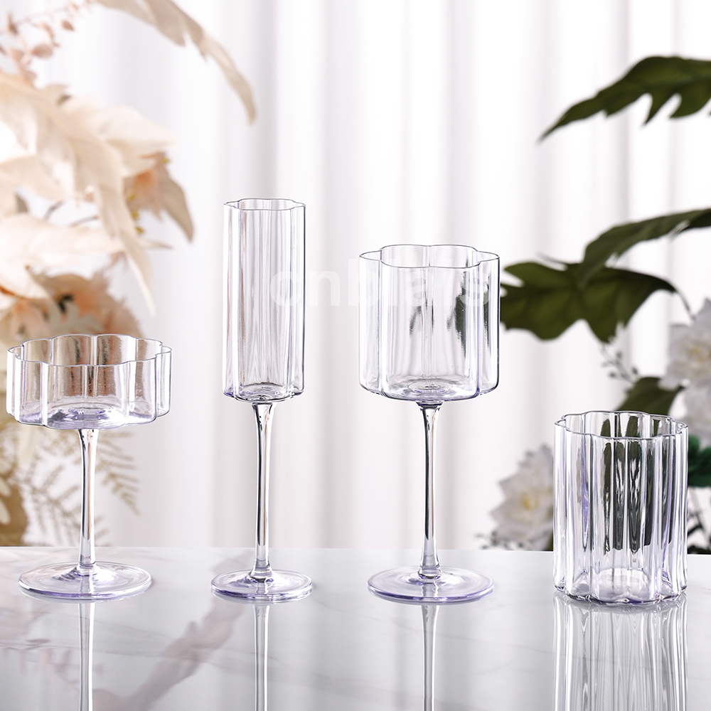 Ideal for discerning homeowners, wedding and event planners, and hospitality professionals, this coordinated series—including champagne flutes, wine glasses, tumblers, and cocktail cups—brings a cohesive and sophisticated touch to any table setting. The subtle striped texture not only adds visual depth but also provides a pleasing tactile grip, while the petal-inspired rim lends a soft, natural silhouette.